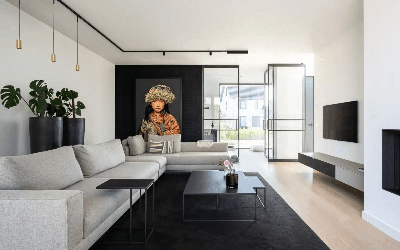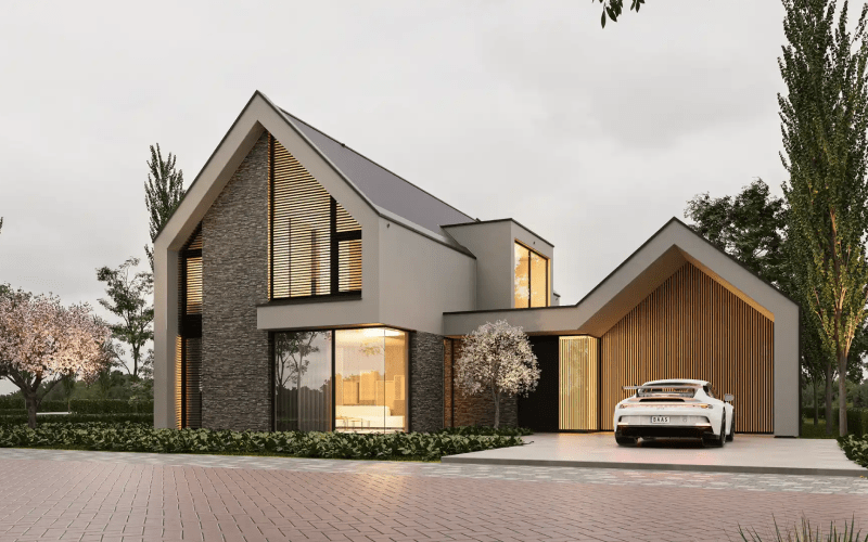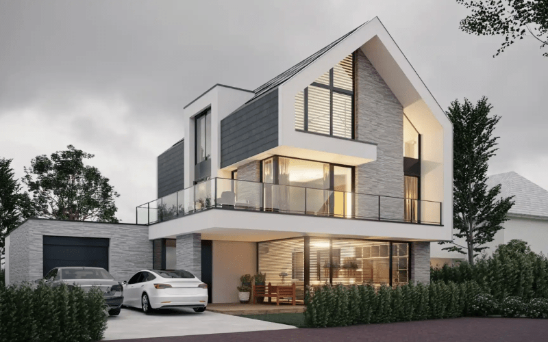 Modern house exteriorLuxurious house with carMinimalist interior living room